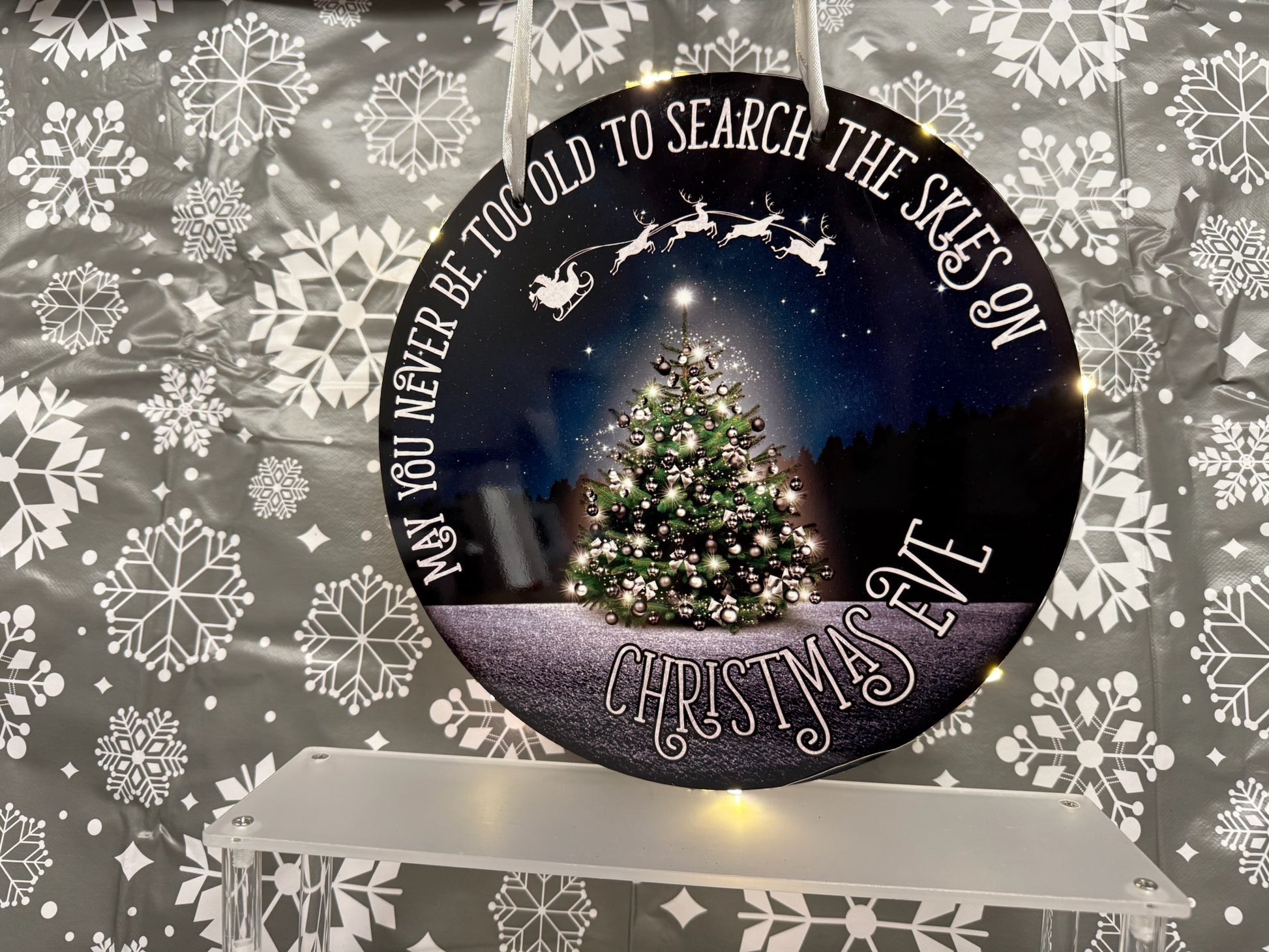 10” Xmas door hanger that can be decorated with all your family members names. MDF decorated with tinsel and waterproof LED lights. Other designs available for order as well, just let us know which one you like.