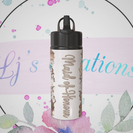 Celebrate your special role with this elegant cream-coloured water bottle, perfect for the Maid of Honour. Featuring a timeless design that complements any wedding aesthetic, this practical bottle keeps you hydrated throughout the big day and beyond. Durable, stylish, and a wonderful keepsake to remember your important place in the celebration. Ideal for bridesmaids, wedding parties, and those who want a touch of sophistication in their everyday essentials.