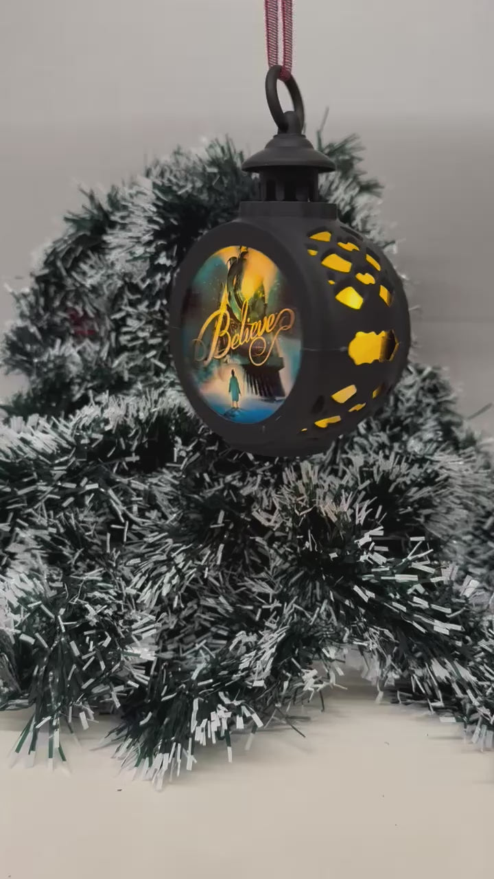 Small Xmas lantern with the Polar express, illustrated with “believe” or can be fully customisable
